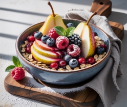 Dieser Frühstücks-Crisp kombiniert süße Birnen, saftige Beeren und eine knusprige Haferflocken-Kruste – ohne raffinierten Zucker, dafür mit extra Protein. Perfekt für ein nährstoffreiches Frühstück oder als gesunder Dessert-Ersatz! Warum dieses Rezept überzeugt…