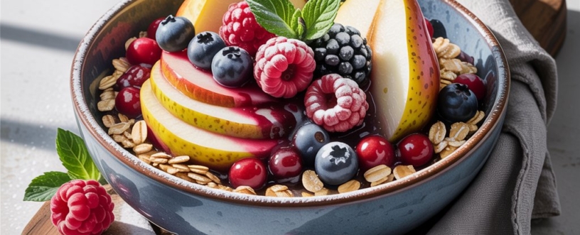 Dieser Frühstücks-Crisp kombiniert süße Birnen, saftige Beeren und eine knusprige Haferflocken-Kruste – ohne raffinierten Zucker, dafür mit extra Protein. Perfekt für ein nährstoffreiches Frühstück oder als gesunder Dessert-Ersatz! Warum dieses Rezept überzeugt…